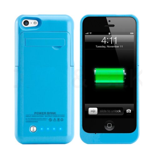 Best External Rechargeable Battery Charging Kickstand Best Slim External Rechargeable Backup Battery Charger Charging Case Cover for iPhone 5c with Pop-Out Kickstand 2200mAh (blue)