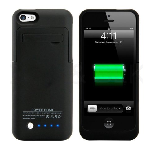 Best External Rechargeable Battery Charging Kickstand Best Slim External Rechargeable Backup Battery Charger Charging Case Cover for iPhone 5c with Pop-Out Kickstand 2200mAh (black)