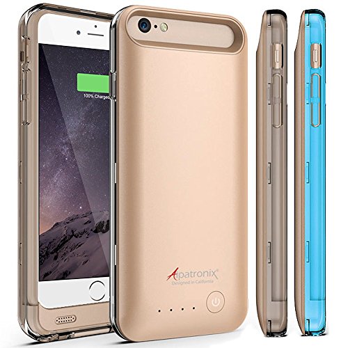 Best iPhone 6 Battery Case, Alpatronix BX140 Ultra-Slim Protective Extended iPhone 6 Battery Charging Case (4.7) with Removable / Rechargeable Power Cover [Fits all versions of the Apple iPhone 6 / 3100mAh Battery Pack / Full iOS 8 Compatible Support / No Signal Reduction / Apple Certified Chip / 4.7 Inch-Model Only] - (Gold - Blue & Clear Color Bumpers)