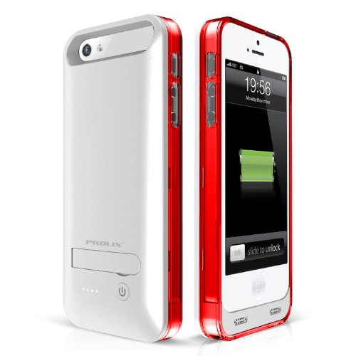 Best Prolix External Protective Certified Compatible Best iPhone 5/5S Battery Case, Prolix Power iPhone 5/5s External Protective Battery Case / MFI Apple Certified / iOS 7 Compatible / Fits all versions of iPhone 5 & 5S (Silver/Red)